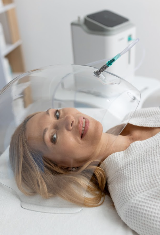 - Happikupoterapia: Suuri akryylikupu tuottaa jatkuvaa 93–95% puhdasta happivirtausta, stimuloiden solujen uusiutumista ja lisäten kollageenin tuotantoa samalla kun se vähentää tulehdusta, mikä johtaa uudistuneeseen ja nuorekkaaseen ulkonäköön.